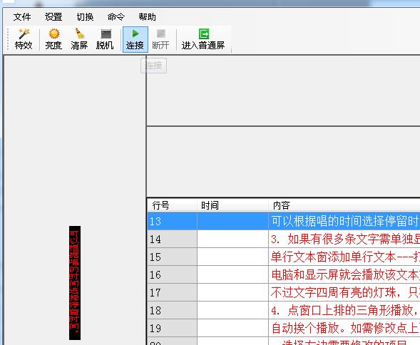 導入進去后可也看到左邊內容,可以導入1個或多個劇本,右邊播放列表可以看到每個劇本的名稱(事先要有文本標題),點哪個劇本右邊就會出現內容。播放類型選擇手動。(自動要先設置播放間隔時間等,并錄制)