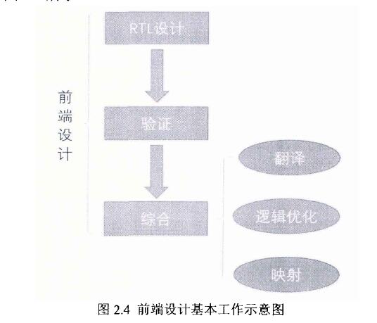 前端設計(front-end) 一般是指芯片從RTL設計到生成可以布局布線的門級網表(Netist) 的階段,按照工作內容進行劃分,主要包括設計、驗證和綜合三大部分,如圖2.4所示。